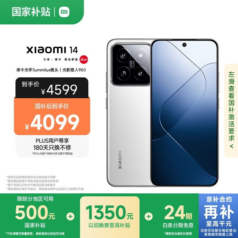 小米Xiaomi 14 16GB+1TB白色版京东优惠价3646元