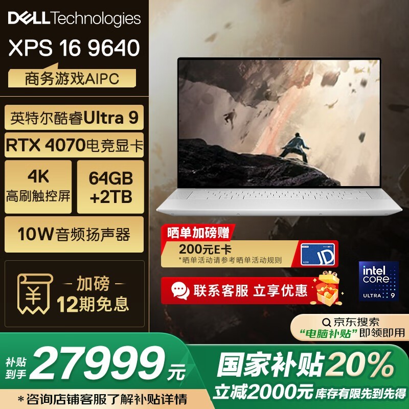 戴尔XPS16 9640大屏本,补贴后27999元12期免息