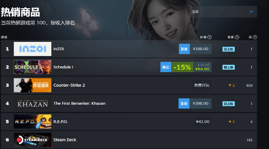 截止至发稿时,本作已登上Steam全球热销榜第一位!不仅超过了近期爆火的在线合作恐怖游戏《R.E.P.O.》,还超越了在昨日刚刚发售的《第一狂战士:卡赞》!