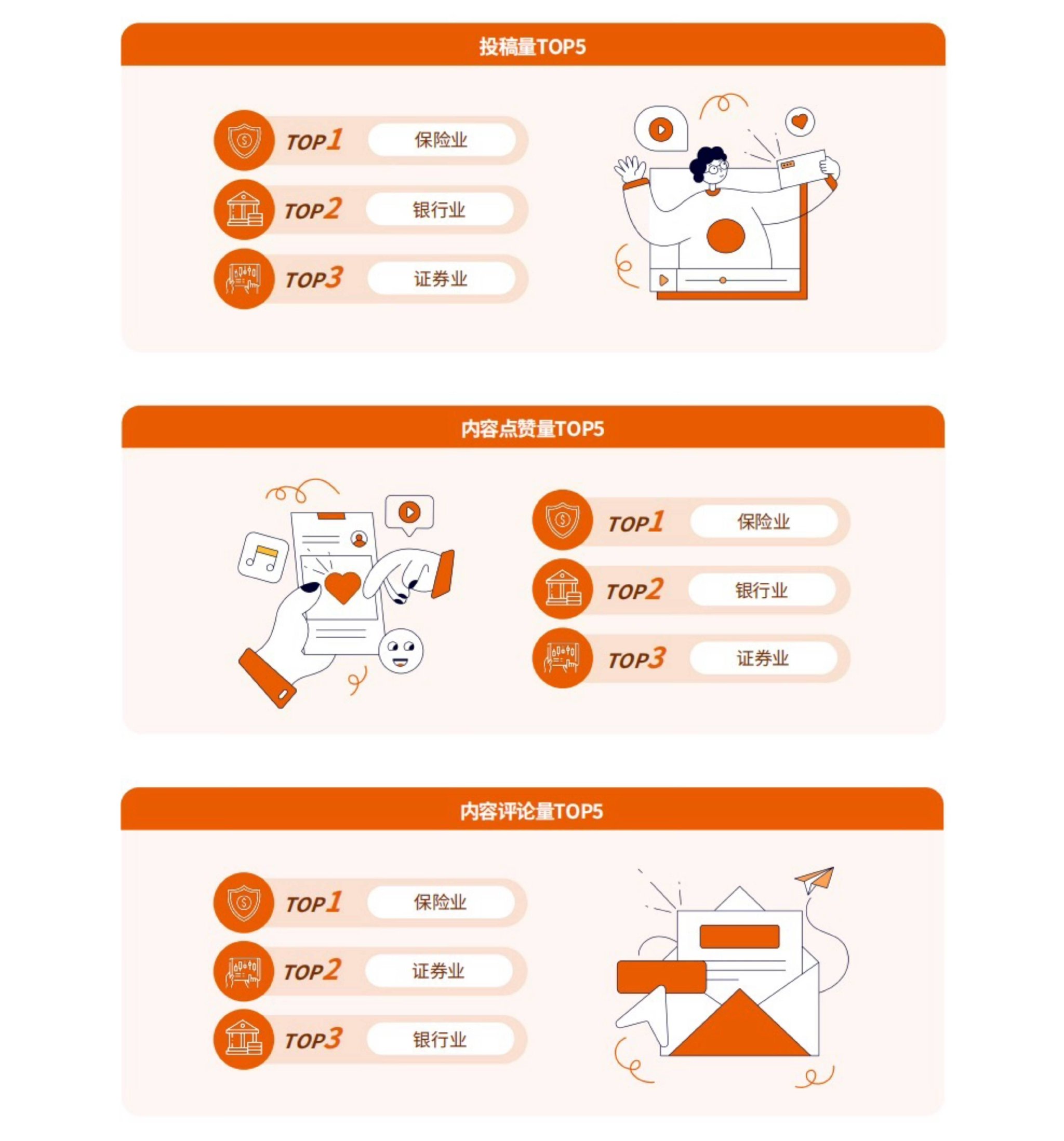 从细分类目来看,不同行业展现出各自的增长特点:保险业粉丝数量最多,在投稿量、点赞量和评论量方面均领先,占据行业“声量高地”。银行业开设企业号的数量最多,投稿量和点赞量均排名第二,反映出用户对该领域较强的需求缺口。证券业凭借突出的话题属性,激发了广泛讨论,成为财经舆论的焦点。基金业发展潜力巨大,用户关注度持续攀升,市场空间值得进一步挖掘。