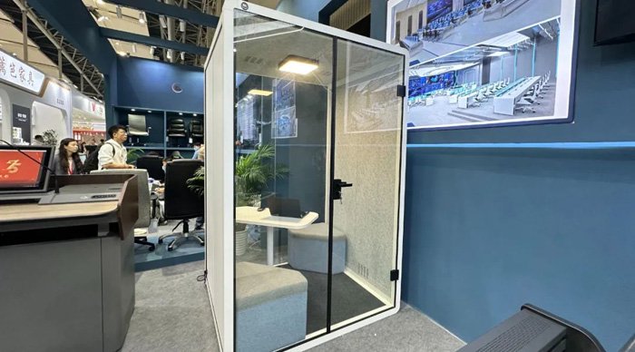 本次展会,照彰新品‘静音仓’吸引了很多客户朋友前来体验,是一款集隔音降噪、独立私密等诸多优势于一身的功能性空间设施,适用于多样化的适用场景。
