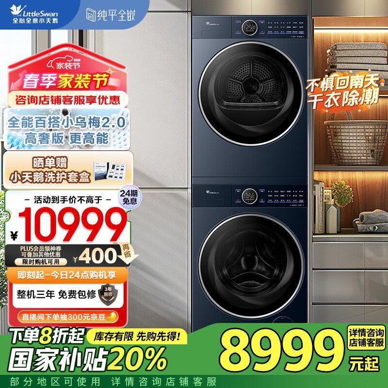 小天鹅小乌梅2热泵洗烘套装京东特惠7196元到手
