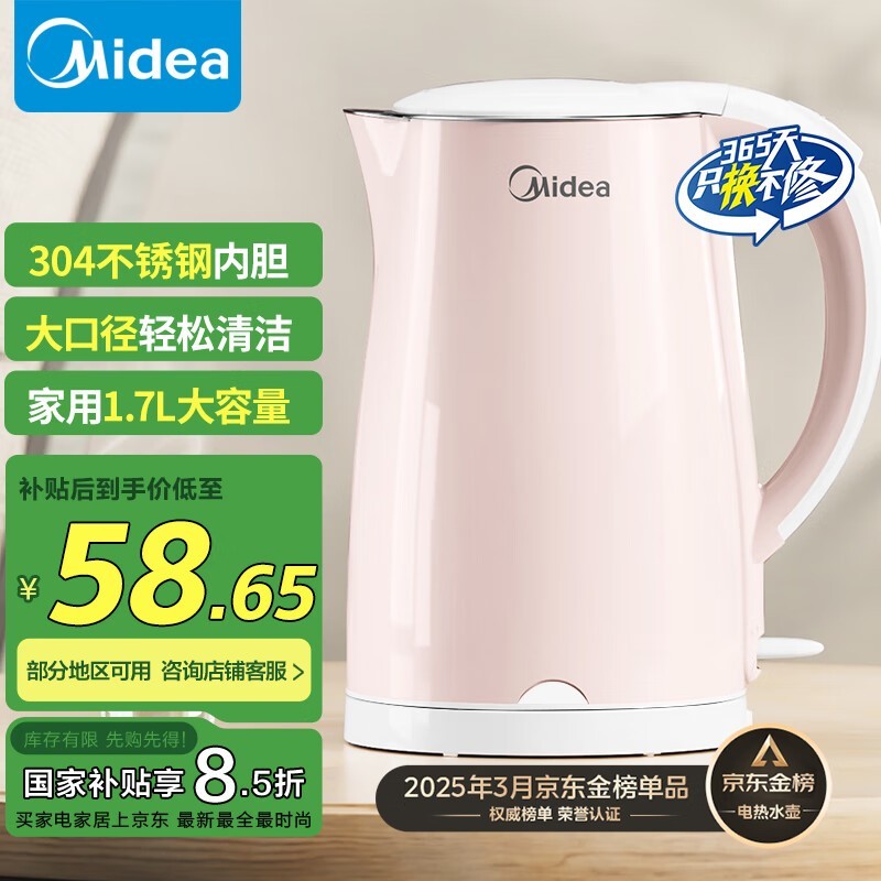 美的电水壶WHJ1705b大功率快速烧水仅45.66元