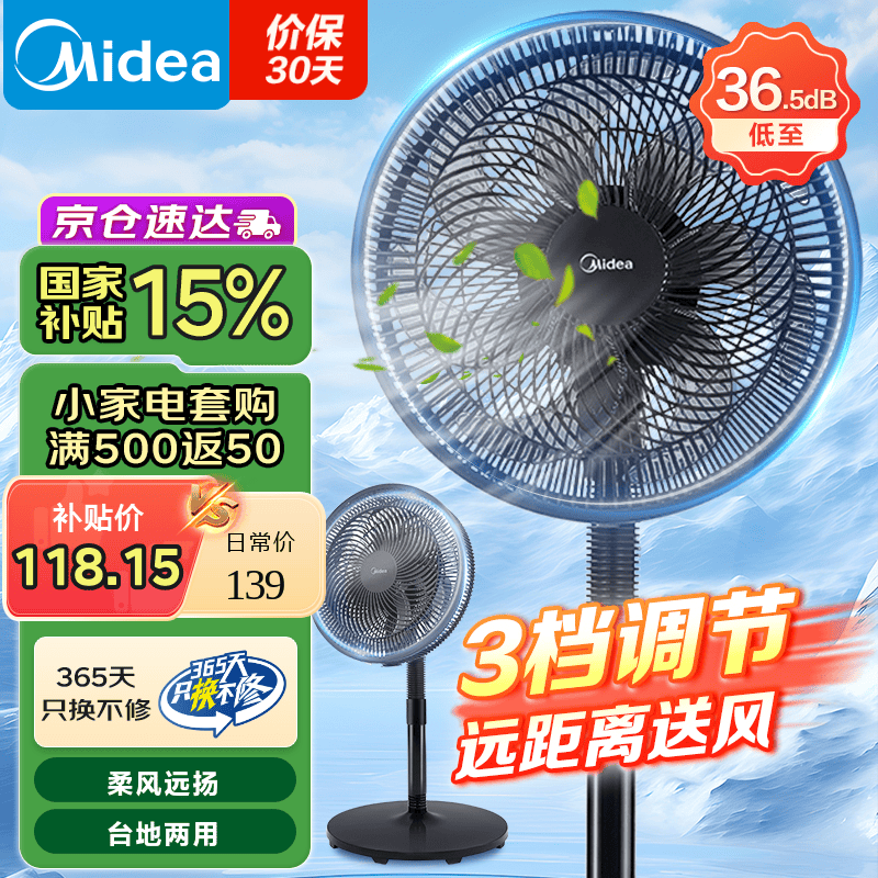 美的SAF30AB落地扇静谧黑强劲风力舒适清凉体验
