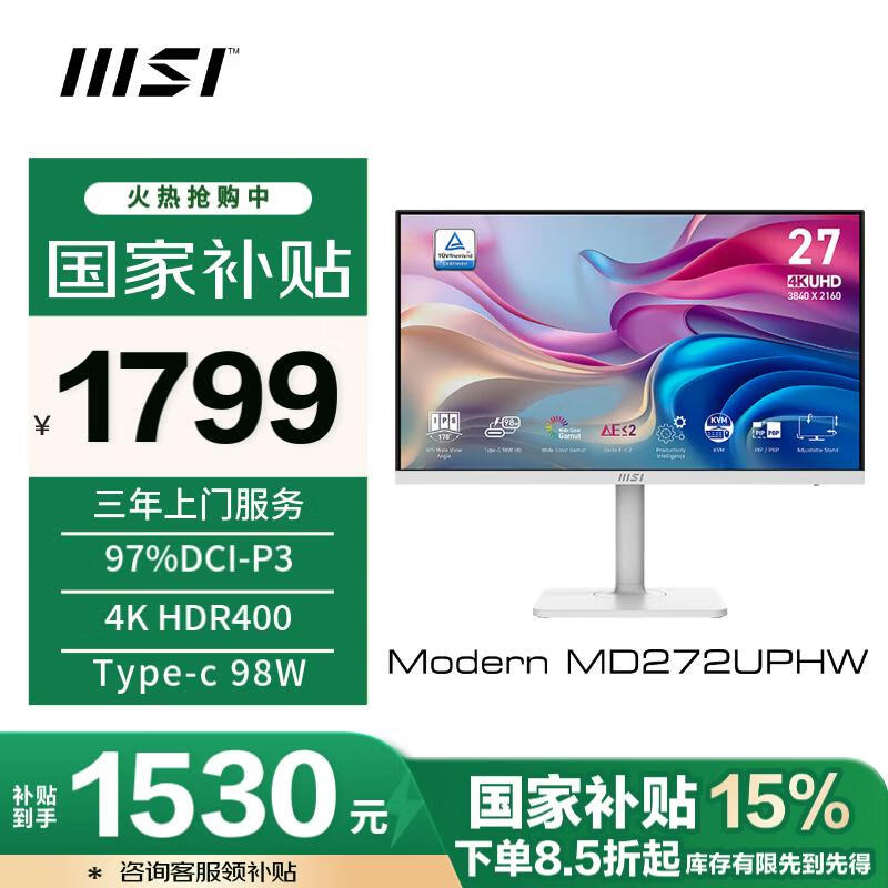 微星27英寸显示器优惠,原价1799现1521.51