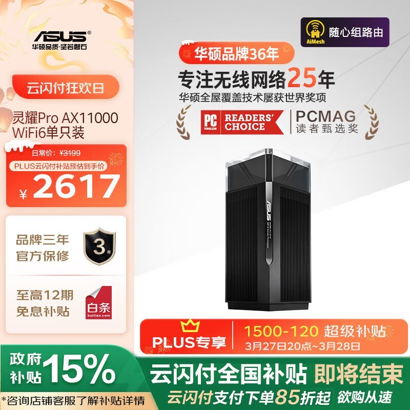 华硕灵耀Pro AX11000路由器京东优惠大促