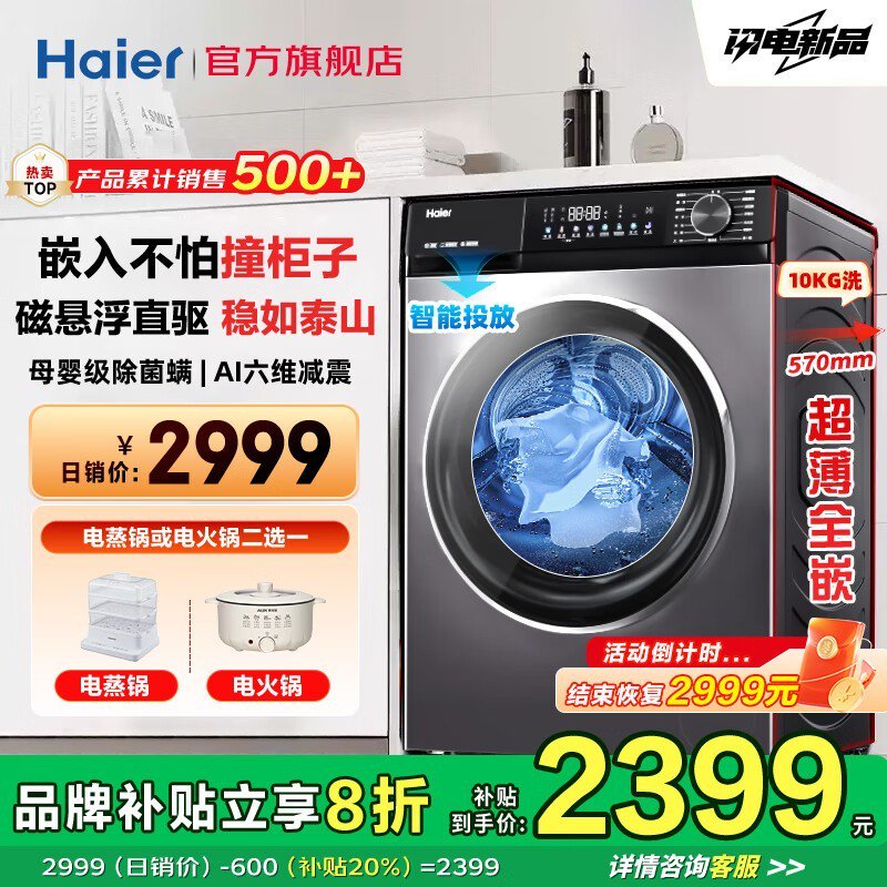 海尔追光系列10kg洗衣机京东优惠价1834元