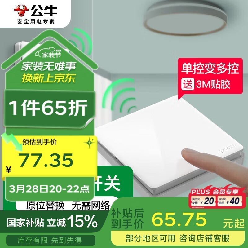 公牛无线开关遥控免布线用一开双控套装京东热卖