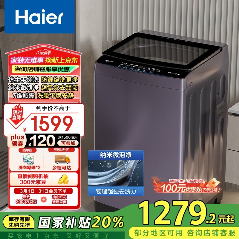 海尔XQB100-BS629变频波轮洗衣机10公斤大容量省心洗