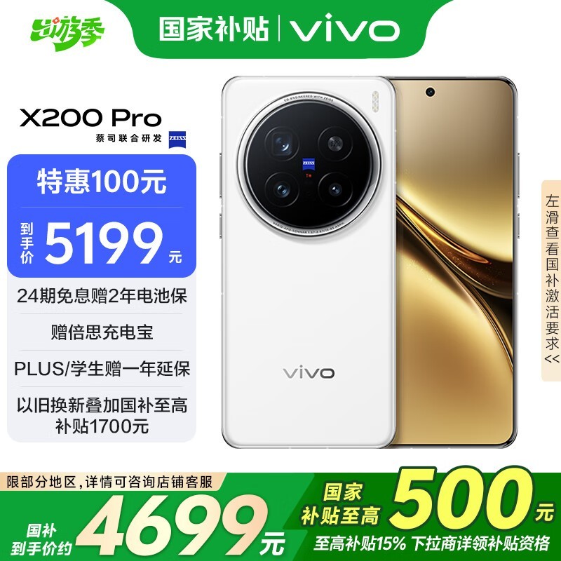 vivo X200 Pro 5G手机白月光配色大内存好价促销