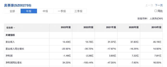 奥赛康是仿制药时代的消化药龙头,因为集采瞬间被打残了。集采前消化领域收入最高达到过2019年的33.7亿,可惜集采一来,到2023年的时候就跌得只剩3亿,直接干得连零头都不剩了。公司的整体营收也从2019年巅峰的45亿迅速暴跌到2023年的14亿,真是要多惨有多惨。