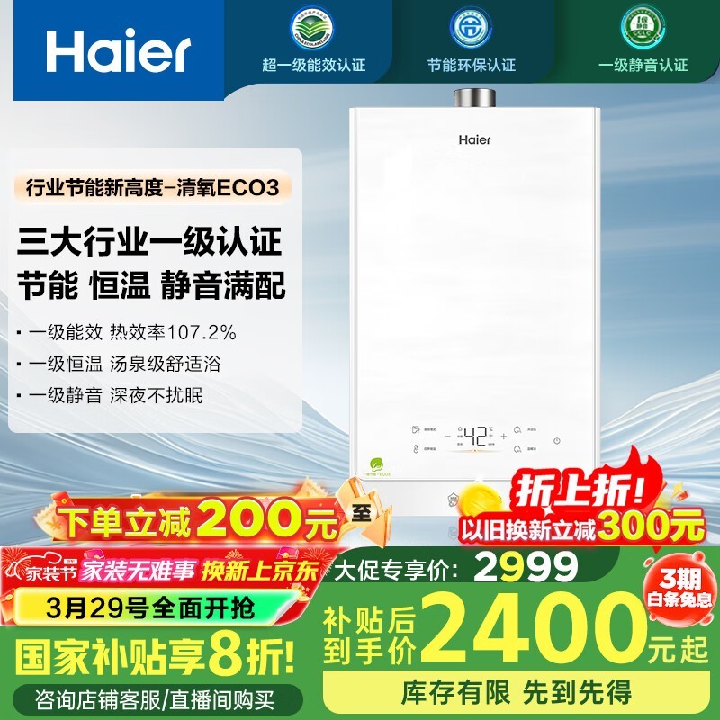 海尔16L燃气热水器京东优惠价2075元