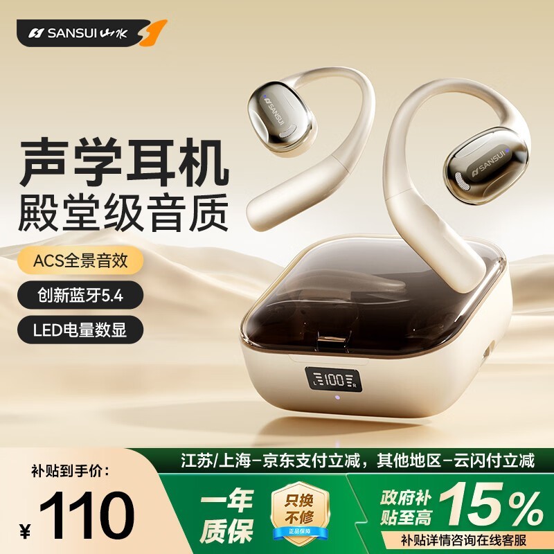 山水TW93S蓝牙耳机骨传导技术舒适佩戴解放双耳