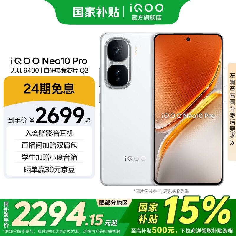 iQOO Neo10 Pro 5G手机京东优惠价2282元到手