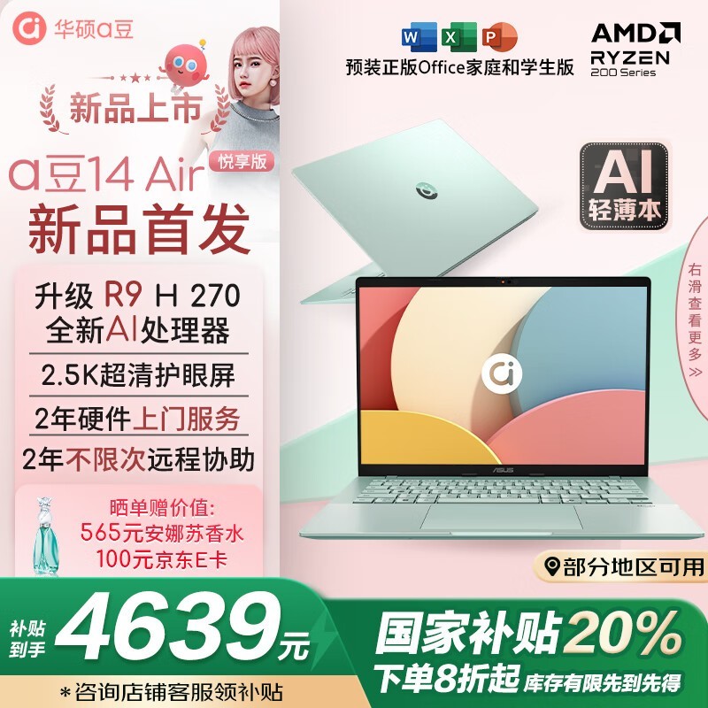 华硕a豆14 Air悦享版轻薄本5699元可入手