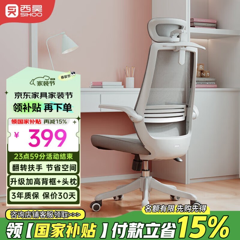 西昊M76A升级款人体工学椅灰网京东活动价499元