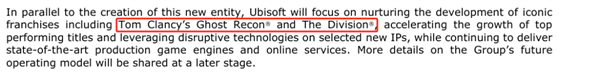 这次最让我个人感兴趣的,还是收购宣言除了提到《刺客信条》《孤岛惊魂》这些经典IP外,还提到了汤姆克兰西的各种IP,而且白纸黑字里还写到了《幽灵行动》,新作大概率是要安排上了。