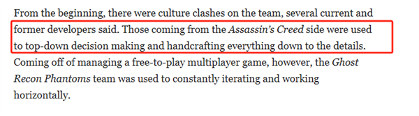 工作室成员自己都跑出来抱怨,觉得刺客信条团队的人,总喜欢自上而下决策管理,完全不考虑游戏玩法的特殊性。