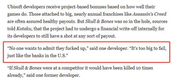 更关键的是,这种模式下,刺客信条团队的开发者却每年都能拿奖金,而《碧海黑帆》因为目标不明确,游戏做不出来,导致奖金稀少,仅存的一点积极性也给磨没了。