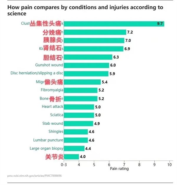 其实,关于“什么类型疼痛最强烈”这个话题,我倒觉得以上这个排名是有局限性的。