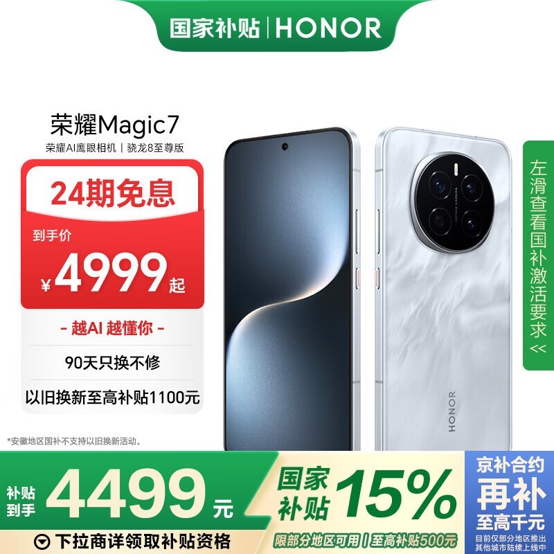 荣耀Magic7 16GB+512GB版手机京东优惠价3739元