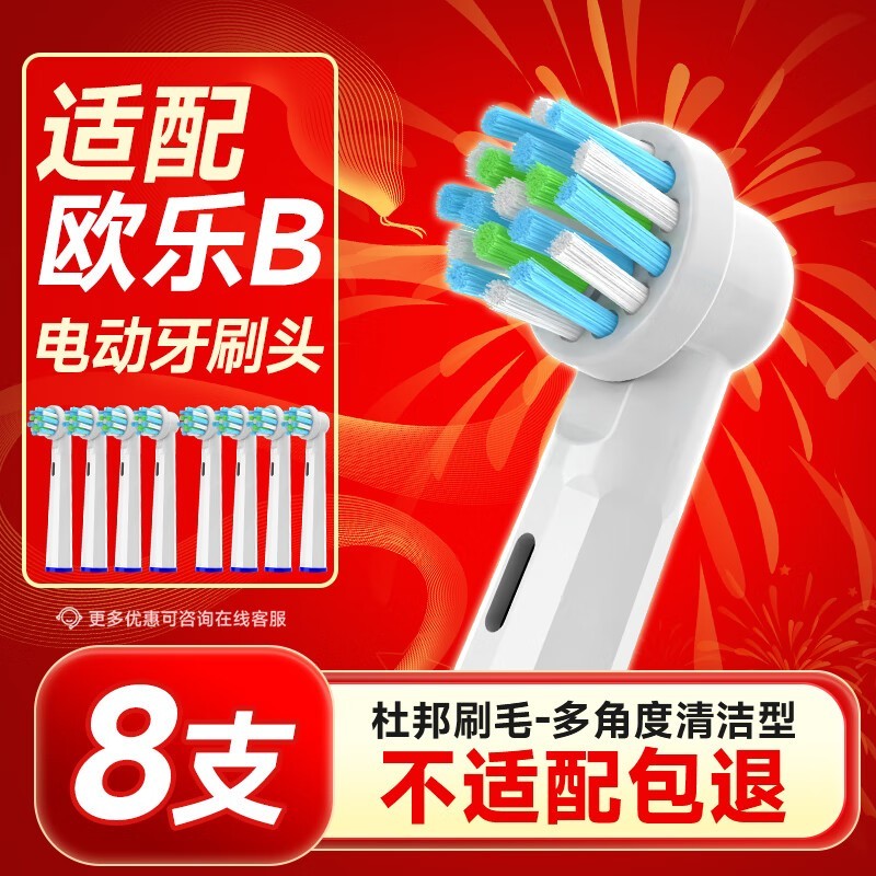 东耐伦电动牙刷头8支装兼容oral-b博朗D12/P2000等型号