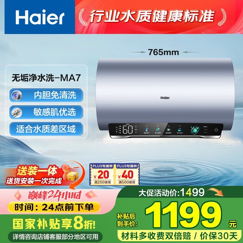 海尔60L电热水器1114元可带回家
