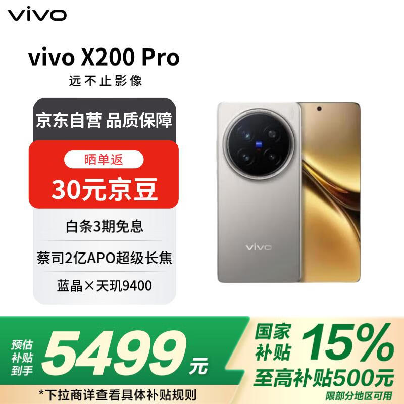 vivo X200 Pro 5G手机钛色16GB+512GB京东活动价4622元