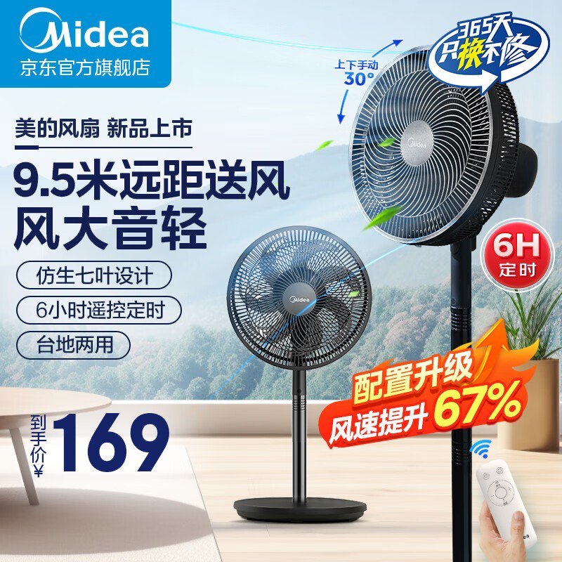 美的电风扇SAH30ADR家用七叶遥控定时大风力低噪运转