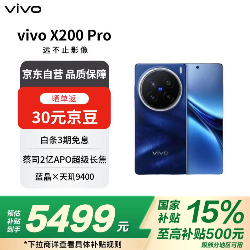 vivo X200 Pro 5G手机宝石蓝超大存储配置促销