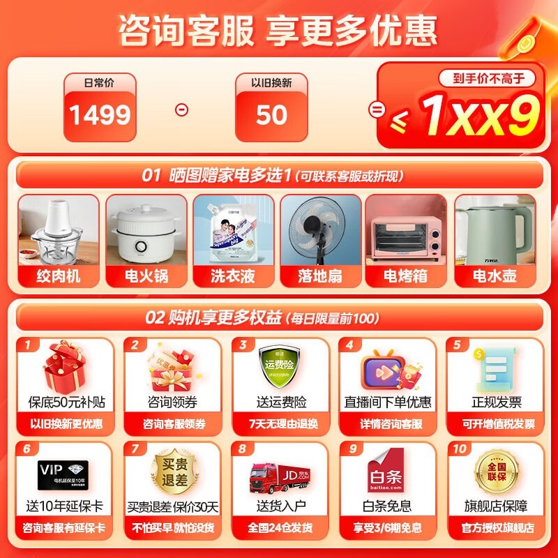 小天鹅10公斤全自动滚筒洗衣机TG100V23PRO仅1039元