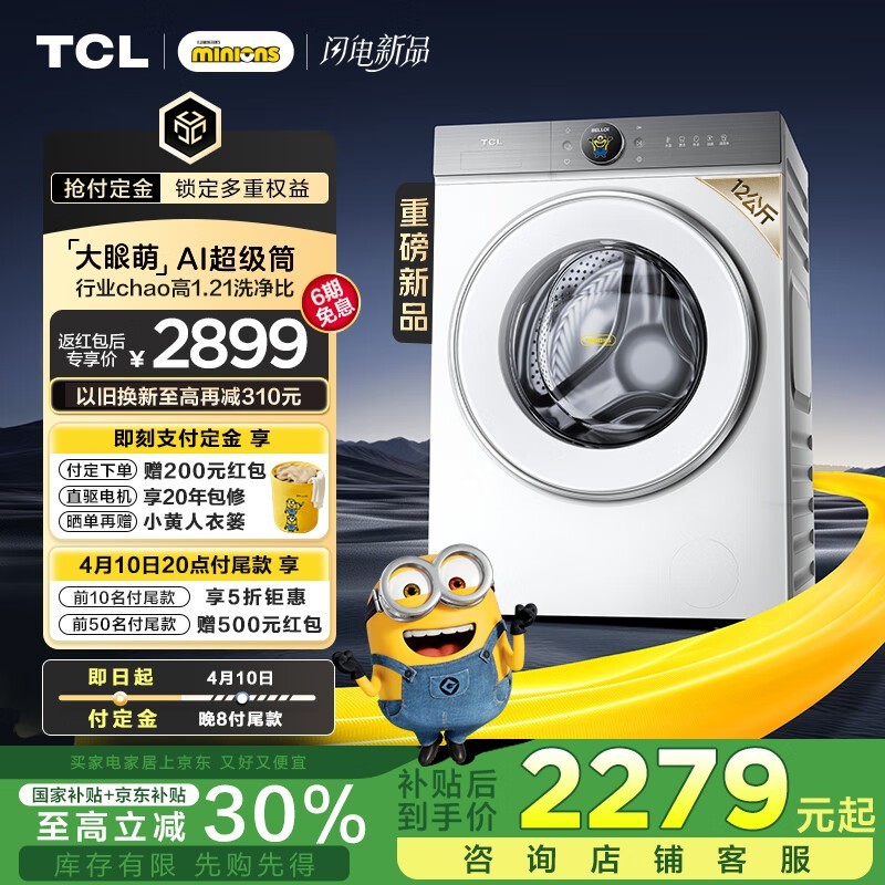 TCL大眼萌洗衣机12KG到手仅1941元享多重优惠