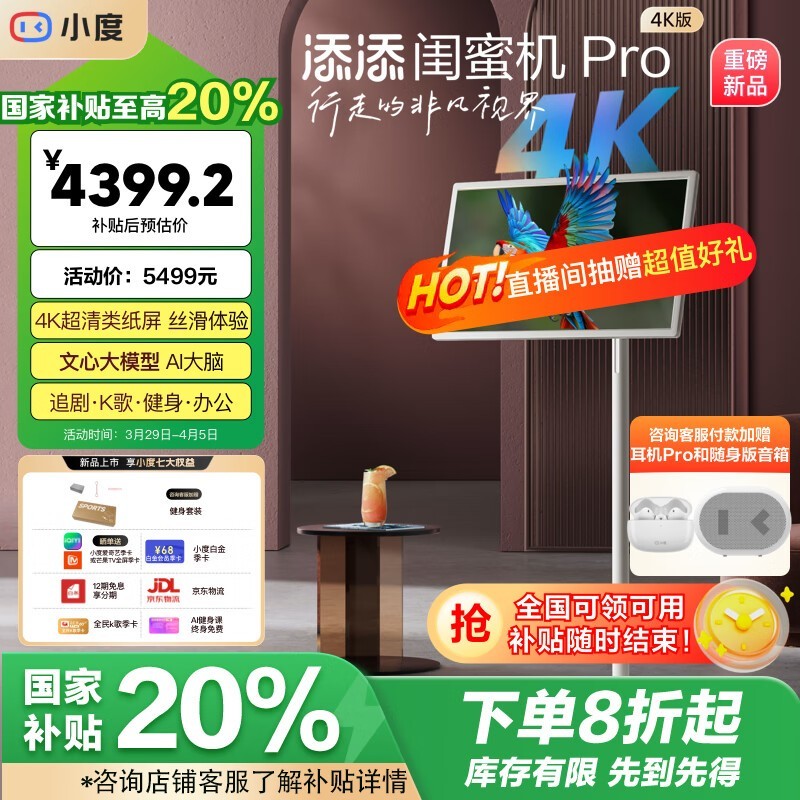 添添闺蜜机Pro 4K版(8+256GB)京东优惠价5499元