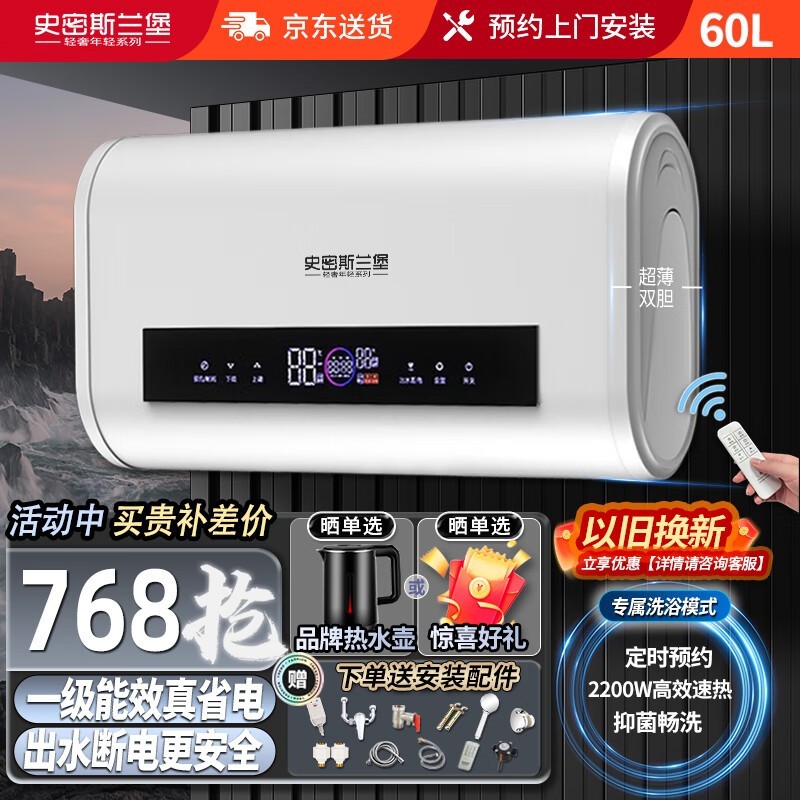 史密斯兰堡扁桶电热水器京东优惠价768元