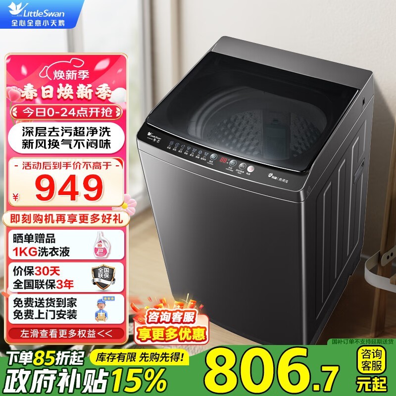 小天鹅10kg免清洗波轮洗衣机TB100V26T京东促销到手646元