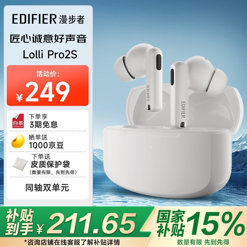 漫步者Lolli Pro 2S真无线降噪耳机京东特惠168元