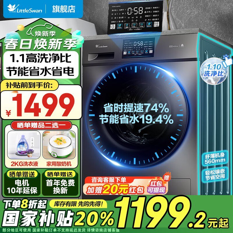 小天鹅TG100V23PRO滚筒洗衣机10kg大容量洗衣机促销