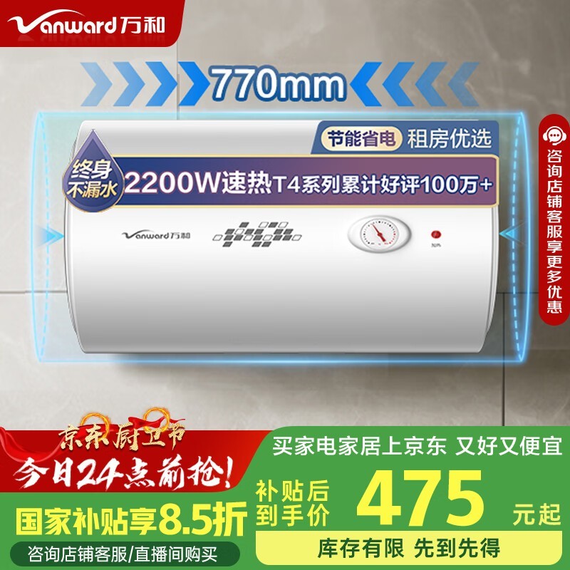 万和E60 - T4 - 22电热水器,475元超值入手