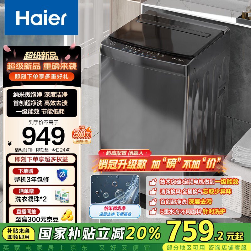 海尔XQB100-Z719波轮洗衣机10kg大容量省水省电仅708元