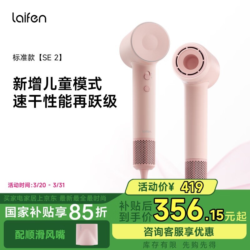 徕芬SE第2代高速吹风机粉色京东促销337元到手