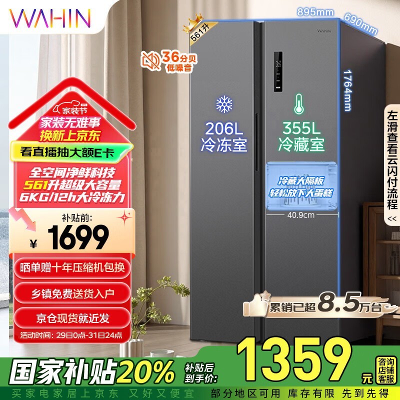 华凌对开门冰箱HR-589WKP双变频一级能效京东1170元到手