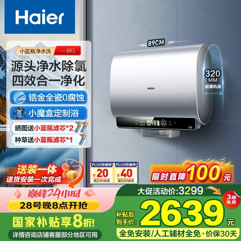 海尔Haier BK5 80L电热水器京东优惠价2548元
