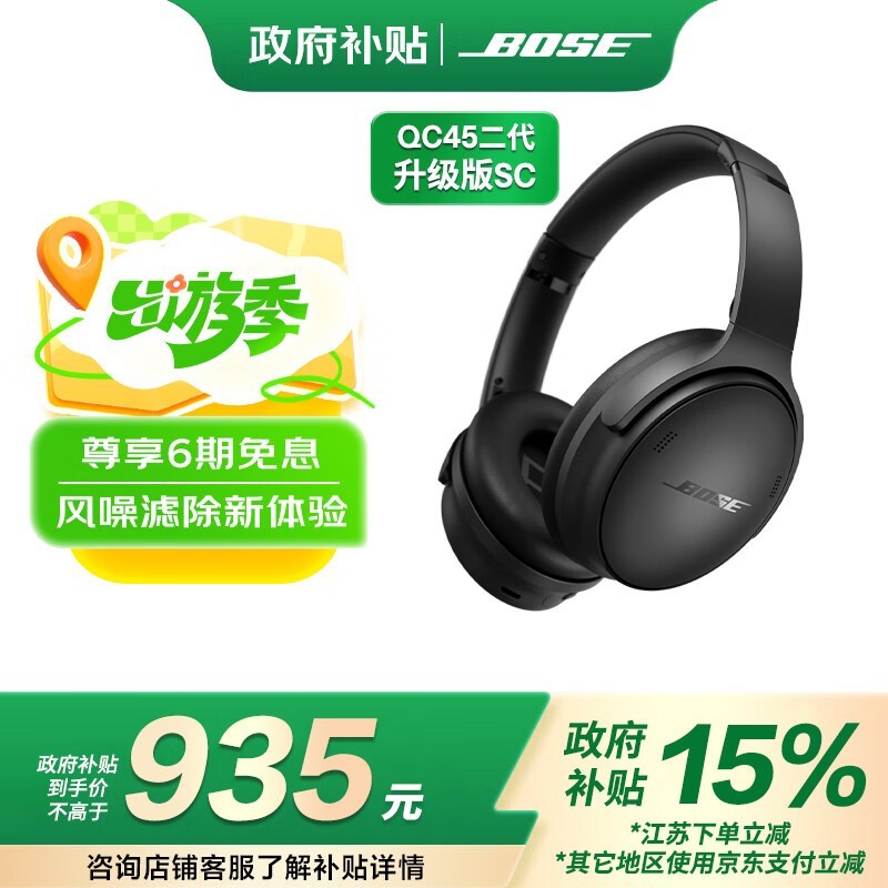 BOSE QC45二代头戴式蓝牙降噪耳机经典黑款促销