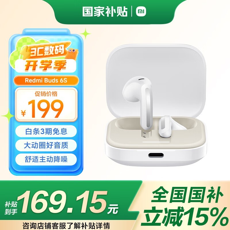 红米Buds 6S蓝牙耳机京东促销,到手168元