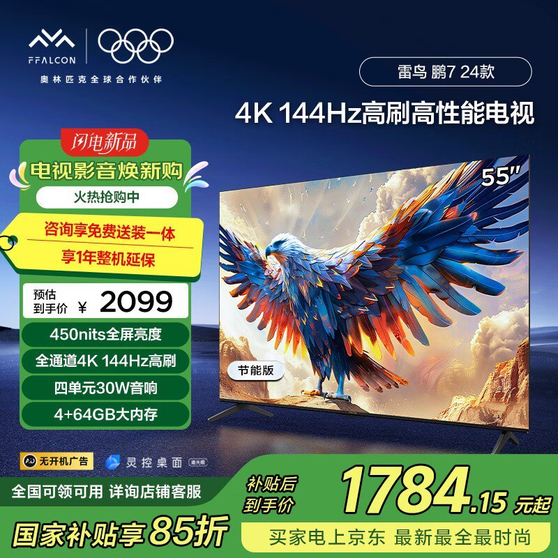 雷鸟鹏7 24款游戏电视55S585C-J震撼上线享多重优惠