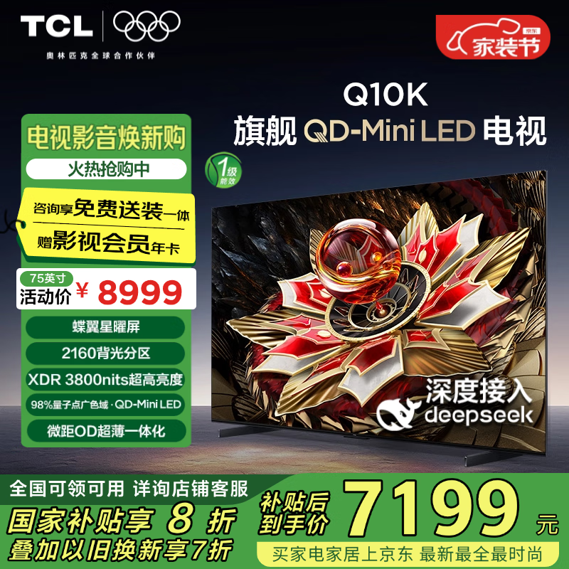 TCL 75Q10K 75英寸液晶电视京东促销价4944元