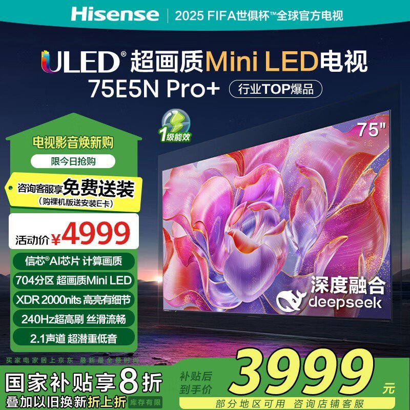 海信75E5ND-PRO液晶电视4K超清大屏智能调节仅3180元