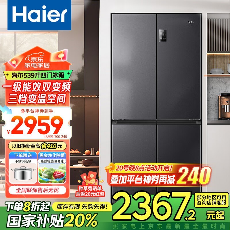 海尔539升四开门冰箱 3899元到手2247元