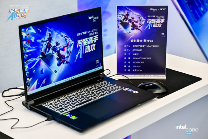 • 英特尔游戏本首次支持独立NPU,解锁AI + 游戏体验,分担显卡算力压力。