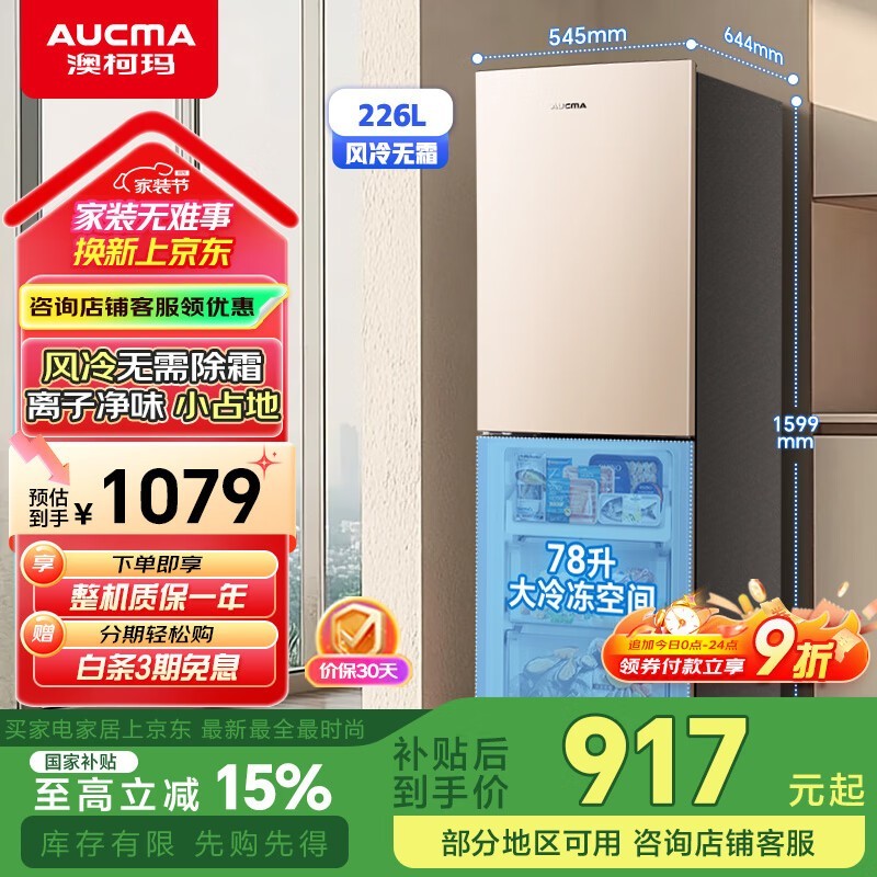 澳柯玛BCD - 226WH金色风冷双门冰箱超值优惠